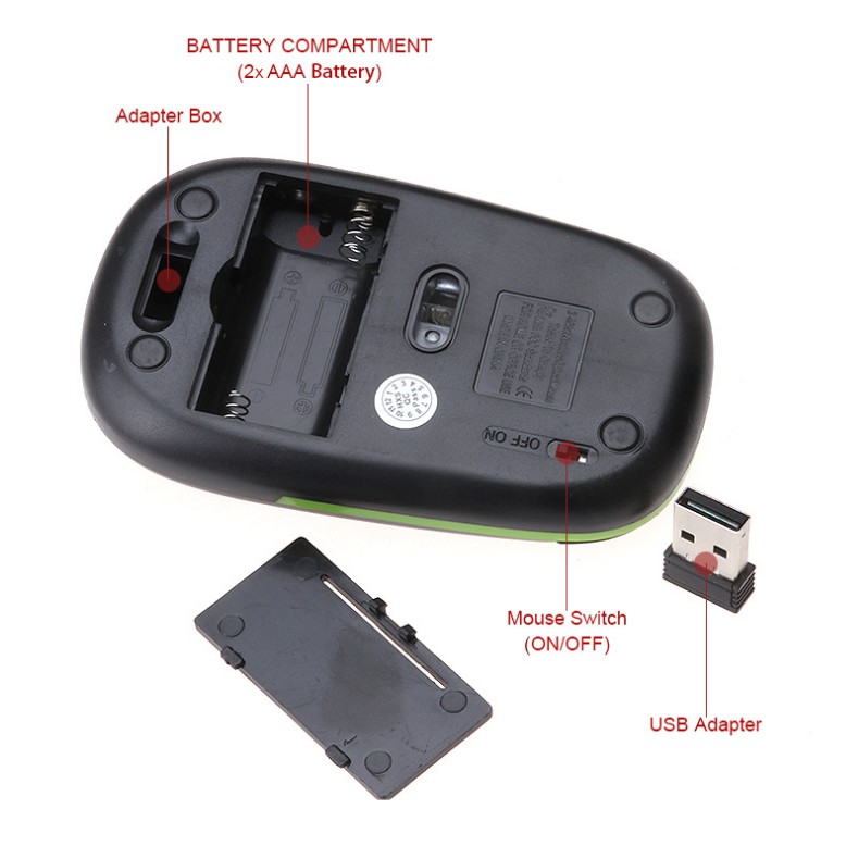 Sử dụng công nghệ không dây 2.4 Ghz với đầu thu USB nhỏ, có khe cất giữ phía dưới chuột, khoảng cách hoạt động lên đến 10m.