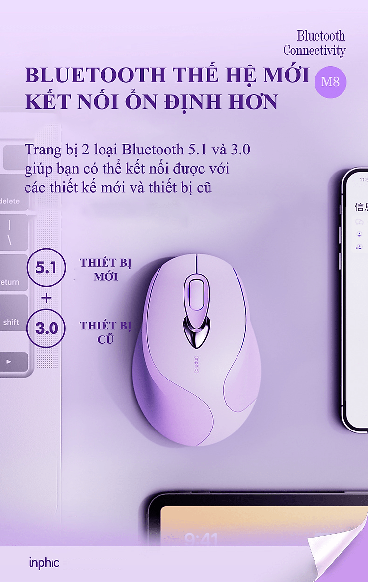 * M8BT sử dụng công nghệ theo dõi cảm biến quang học có độ chính xác cao tiên tiến hơn, di chuyển chính xác, không có đèn chiếu vào đáy chuột
