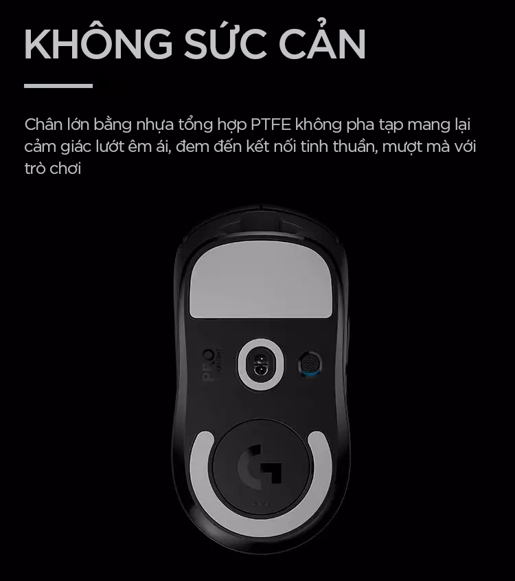 Đặc biệt hơn, chuột không dây gaming Logitech G Pro X - Super Light được trang bị chân PTFE lớn, đảm bảo rằng không chứa các loại tạo chất làm chậm tốc độ chuyển động của chuột. Giúp người dùng trải nghiệm được cảm giác lướt chuột nhẹ nhàng và mượt mà hơn khi chơi các tựa game cần phải có sự phản xạ nhanh chóng.