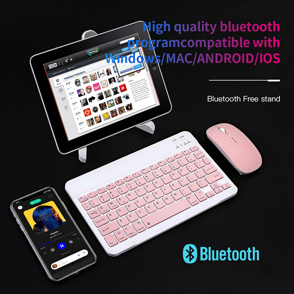 - Combo chuột và bàn phím Bluetooth mini không dây, dùng cho máy tính, laptop, máy tính bảng, điện thoại - Hàng chính hãng