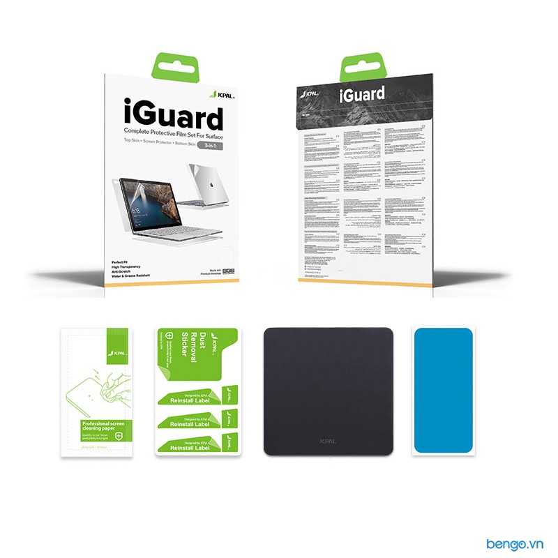 Bộ dán JCPAL iGuard 2 in 1 cho Microsoft Surface Laptop được đóng gói tiêu chuẩn với bộ kit làm sạch trước khi dán, dễ dàng sử dụng và không để lại keo dính khi gỡ bỏ.