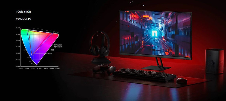 Chuyển đổi mượt mà giữa nhiều sắc độ với DCI-P3 và sRGB Gam màu rộng 95% DCI-P3 và 100% sRGB* sở hữu khả năng hiển thị màu đa dạng, giúp hiển thị màu sắc phong phú và chân thực hơn. Độ sâu màu 8 bit cho phép chuyển màu sống động và chi tiết hơn, đảm bảo hiệu ứng chuyển màu mượt mà hơn và nâng cao trải nghiệm chơi game của bạn.